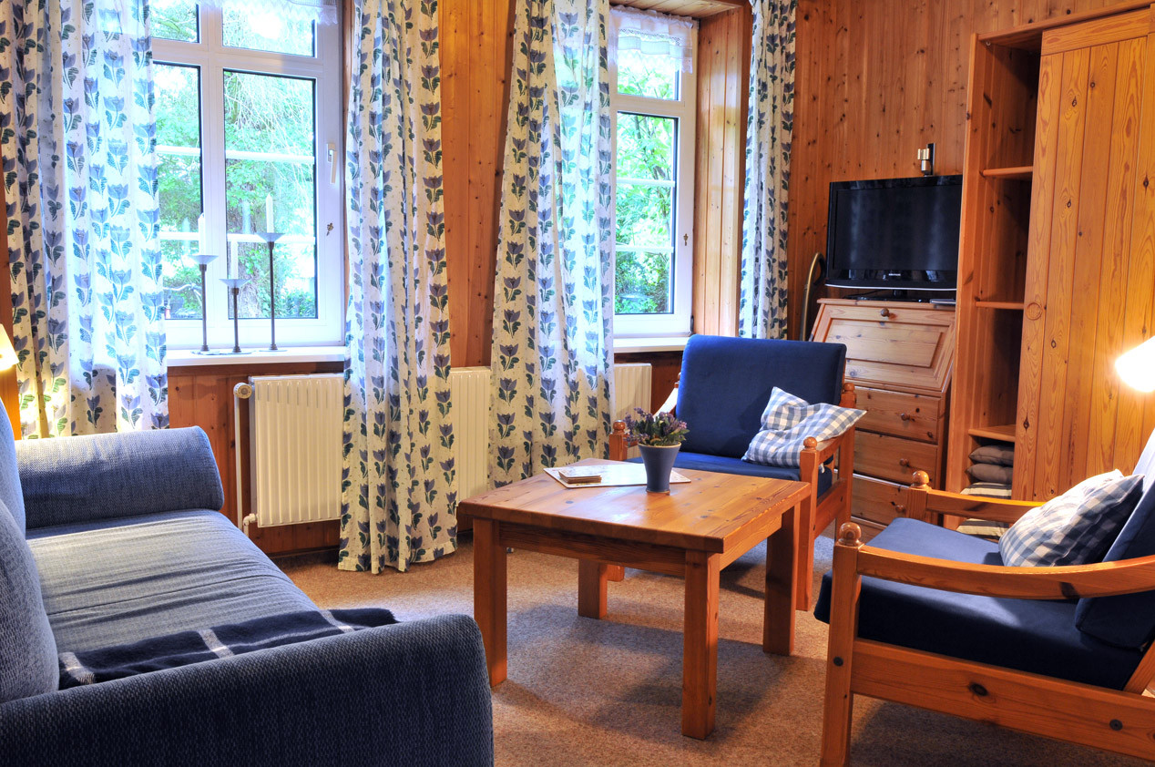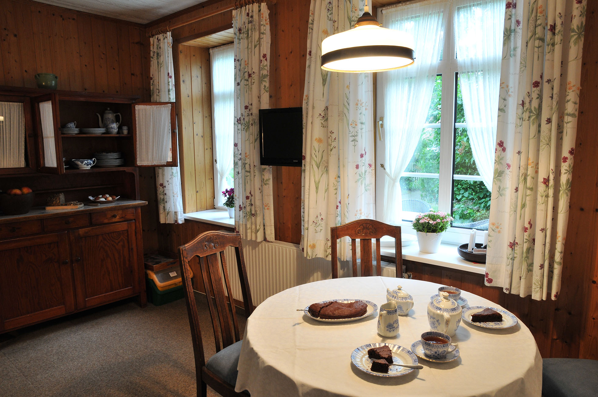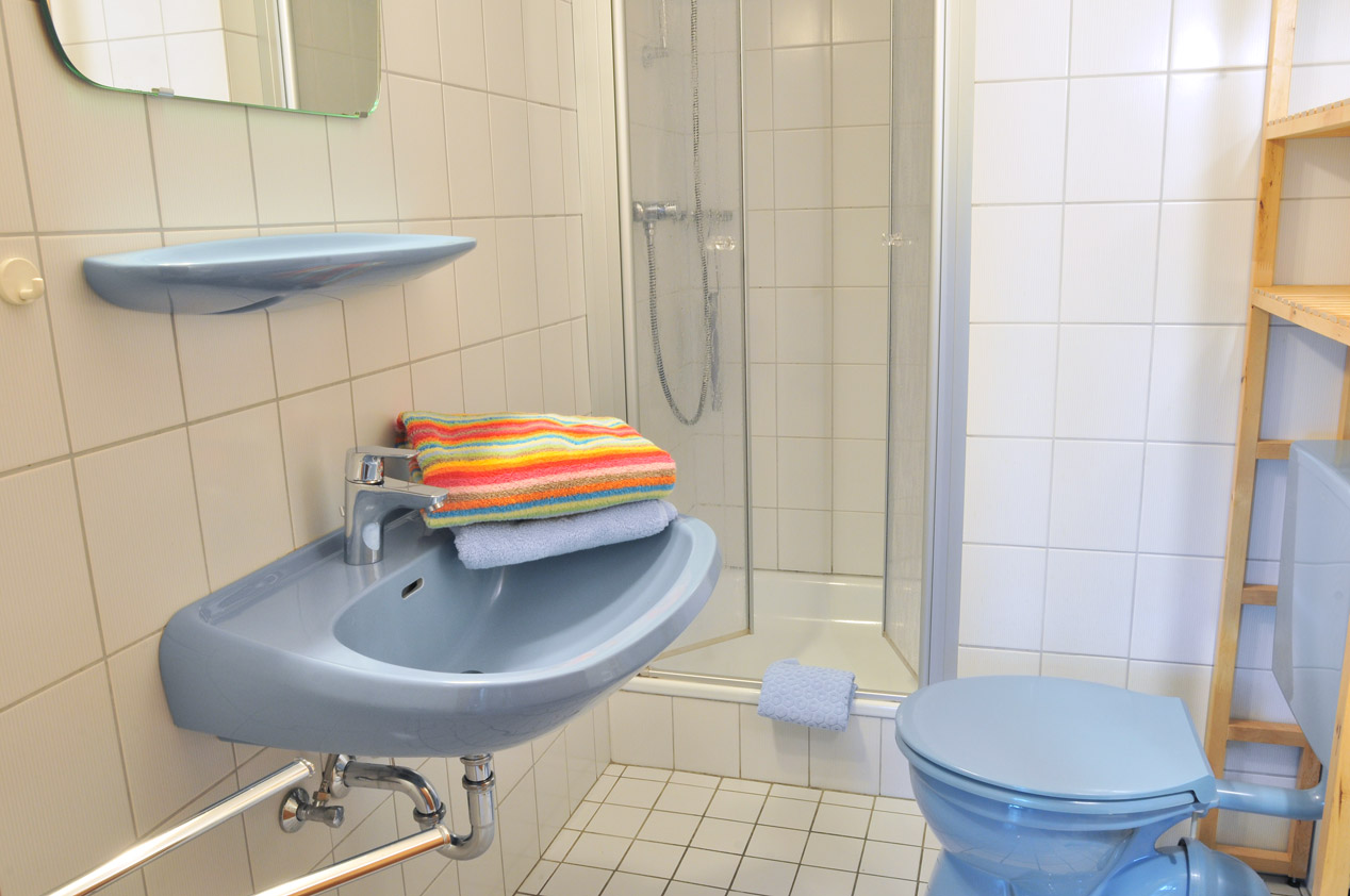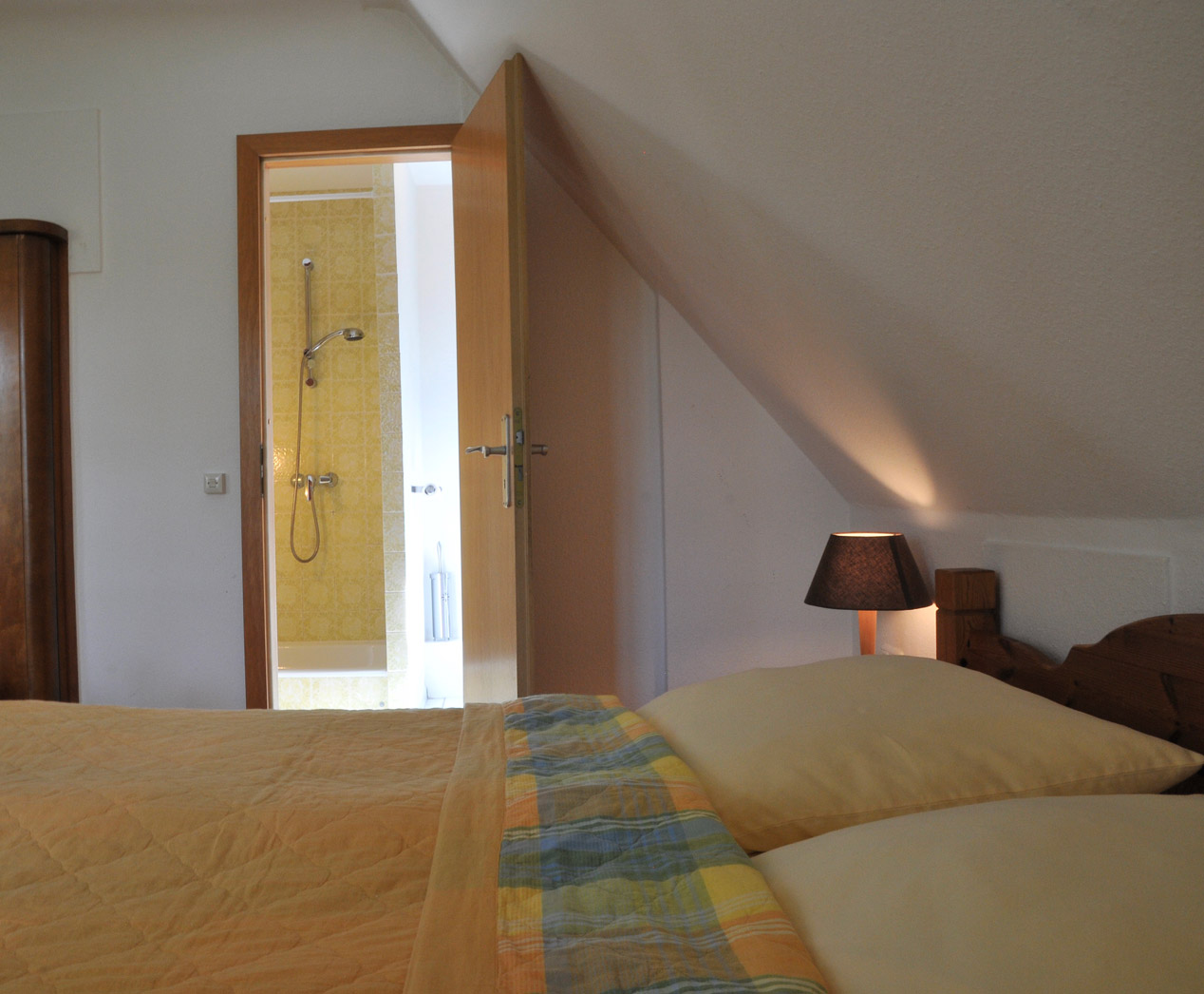 Diese Wohnung besteht aus einem Schlafzimmer mit Doppelbett, einem Wohnzimmer, Küche mit Sitzplatz, Bad (DU, WC, WB) und Terrasse. Ein separater Eingang an der Südseite sorgt für Ruhe und eine gewisse Abgeschiedenheit.